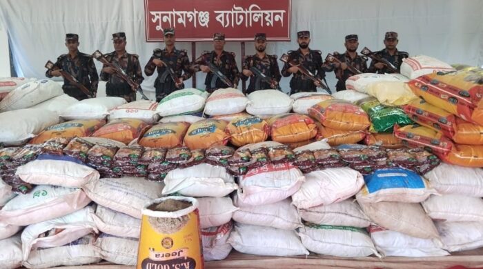 সুনামগঞ্জের বিশ্বম্ভরপুরে একটি পরিত্যক্ত ঘরে বিজিবি ও সেনাাবহিনীর যৌথ অভিযানে ৪০ লাখ টাকার ভারতীয় অবৈধ পণ্য আটক